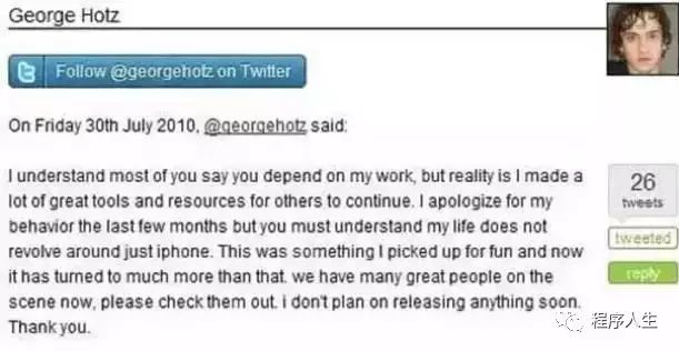 2010年,他在自己的主页上PO了一段话,告诉大家他要收山了,以后再不会破解iPhone。
