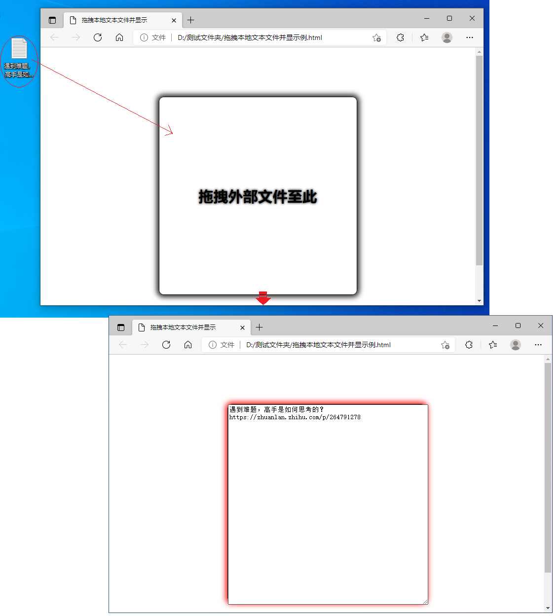 </html>保存为文件名为:拖拽本地文本文件并显示例.html