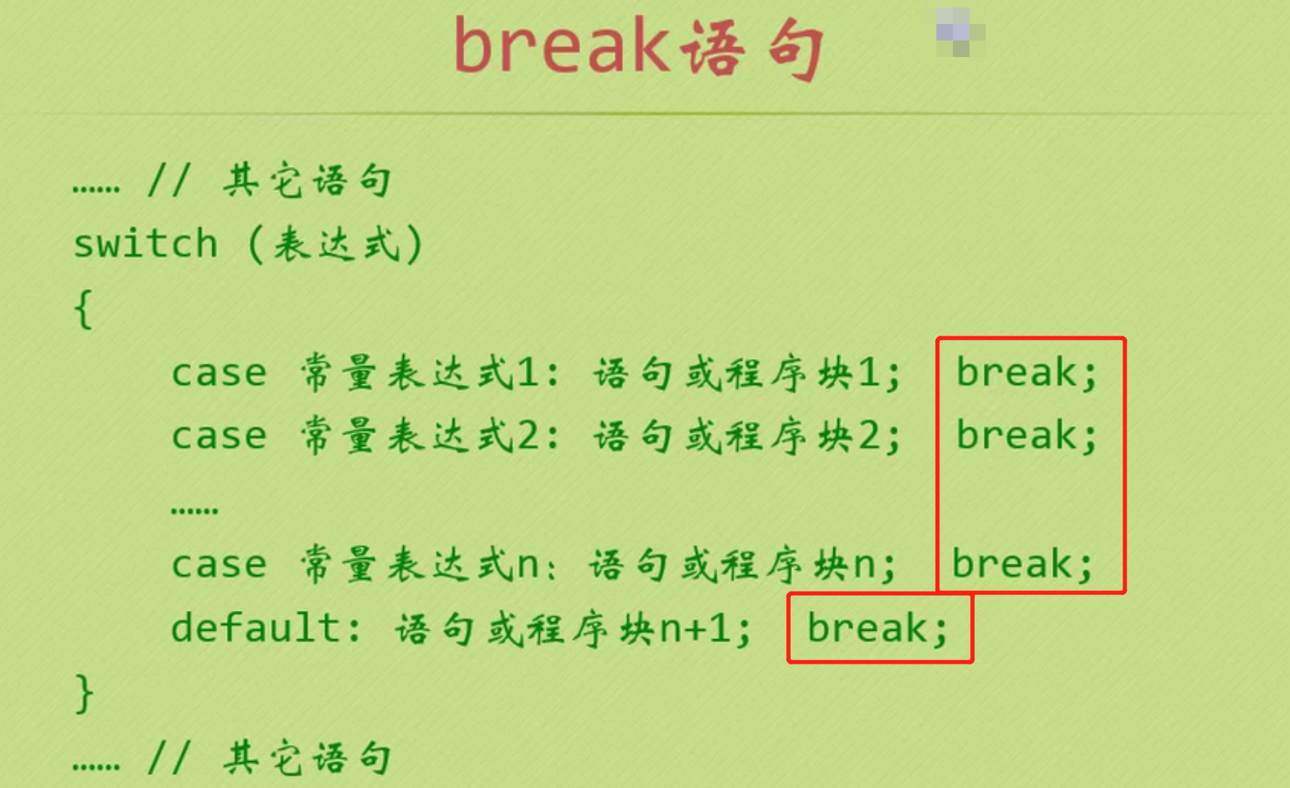 同样,在多层 switch 嵌套的程序中,break 也只能跳出其所在的距离它最近的 switch。但多层 switch 嵌套实在是少见。