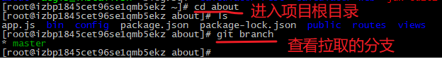 [root@izbp1845cet96se1qmb5ekz about]# git branch