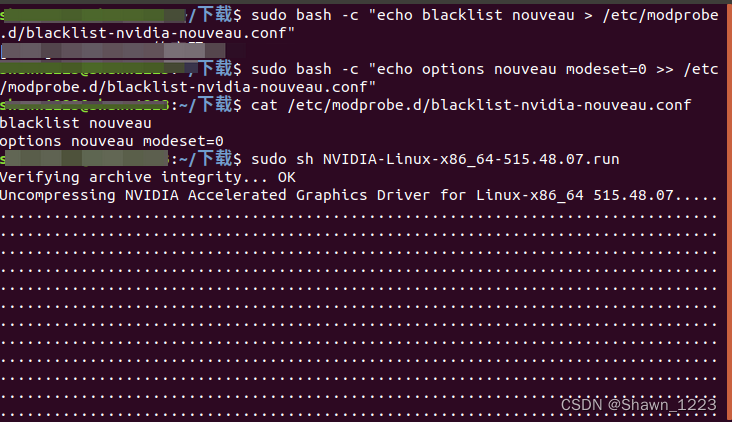 3.安装官方的驱动需要先禁用这个开源驱动,,依次执行如下: