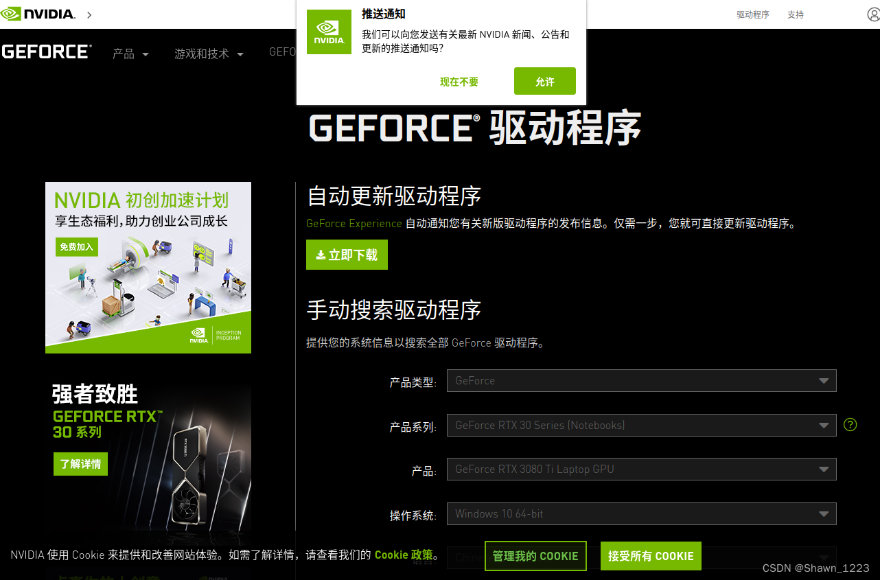 1.根据自己的显卡型号,到NVIDIA官网下载对应的驱动: