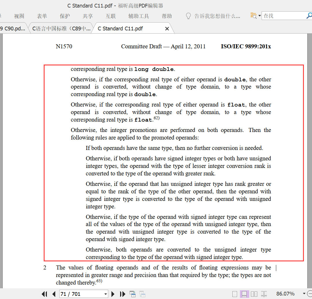 2011年出台的C11标准中6.3.1.8章节中自动类型转换的规定与C99标准的此部分规定完全一致: