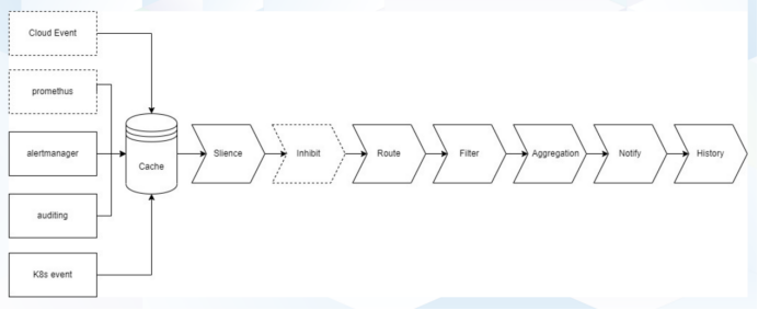 Notification Manager是KubeSphere开源的一款云原生多租户通知管理系统,支持从Kubernetes接收告警、事件、审计,根据用户设置的模板生成通知消息并推送给用户,支持将通知消息推送到DingTalk、Email、Feishu、Pushover、Slack、WeCom、Webhook、短信平台(阿里、腾讯、华为)等。其架构如下所示: