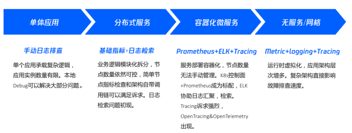 腾讯可观测平台技术负责人罗嘉黎,将腾讯可观测性发展总结为四个阶段: