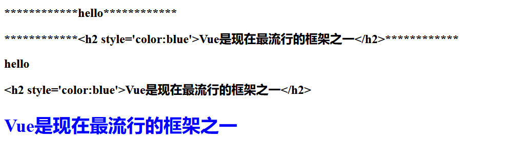 html: "<h2 style='color:blue'>Vue是现在最流行的框架之一</h2>"