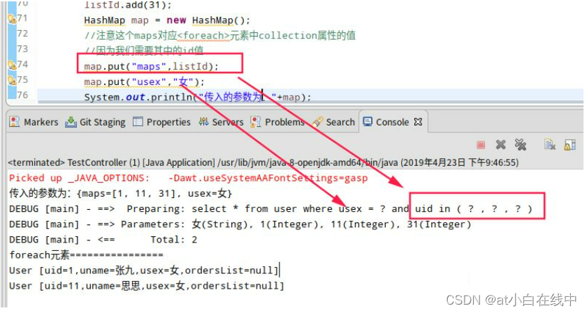 List<MyUser> selectUserByForeachMap(HashMap map);Controller中测试: