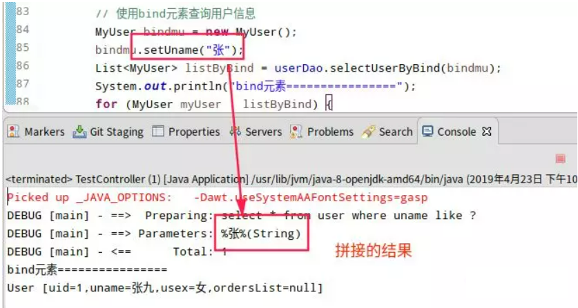 <select id="selectUserByBind" resultType="com.po.MyUser" parameterType="com.po.MyUser">