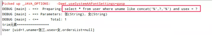 //使用trim元素查询用户信息