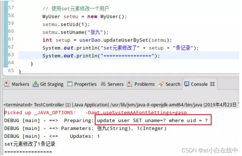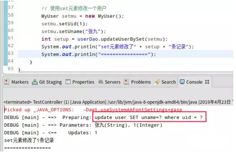 public int updateUserBySet(MyUser user);Controller中测试: