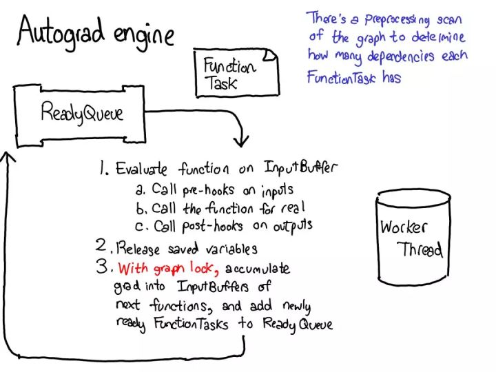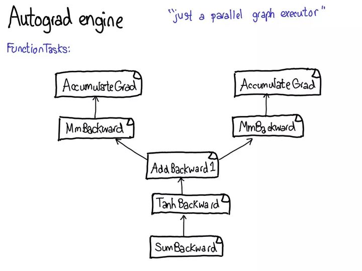 autograd 的意义就在于执行这幅图所描述的计算,但却不用真正生成这个源。PyTorch autograd 并不执行源到源的变换(尽管 PyTorch JIT 确实知道如何执行符号微分(symbolic differentiation))。