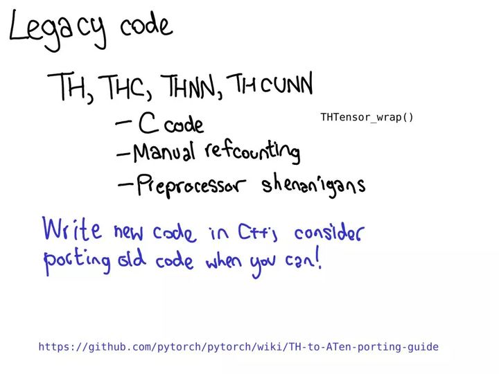 PyTorch 中大量核都仍然是用传统的 TH 风格编写的。(顺便一提,TH 代表 TorcH。这是个很好的缩写词,但很不幸被污染了;如果你看到名称中有 TH,可认为它是传统的。)传统 TH 风格是什么意思呢?