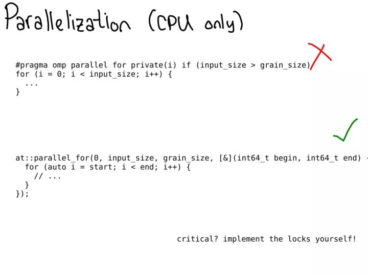 在 CPU 上,你通常需要并行化你的代码。过去,这通常是通过直接在你的代码中添加 OpenMP pragma 来实现。