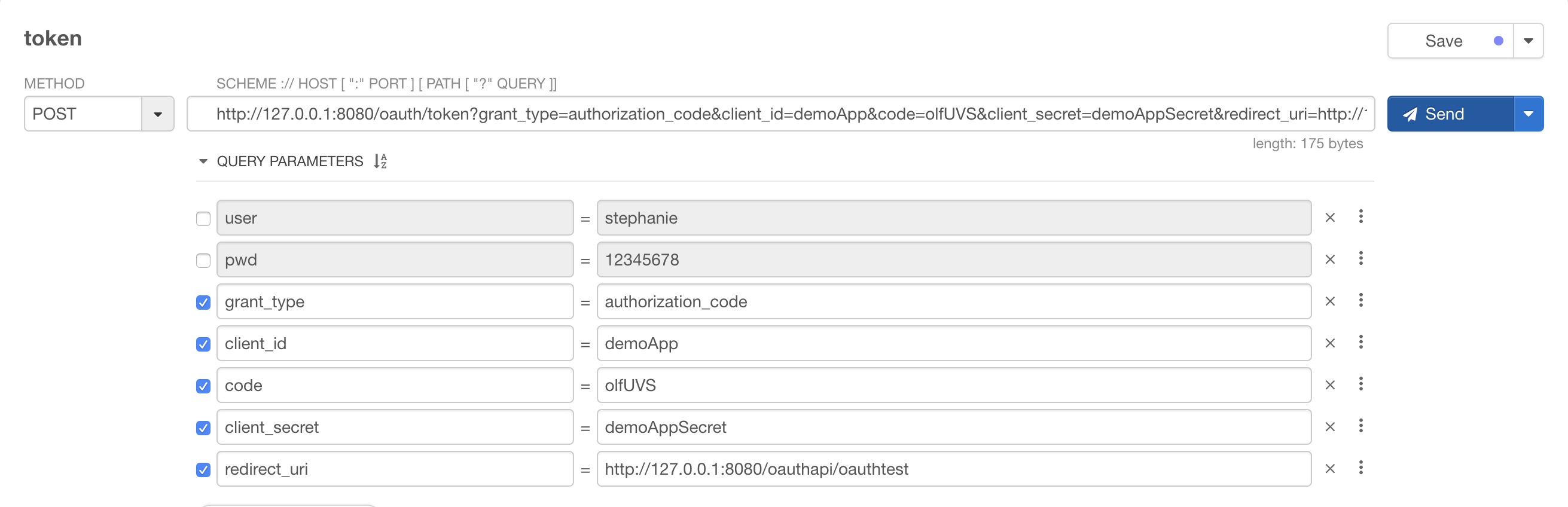 获得授权之后,可以通过code值,和预先约定的信息,通过访问/oauth/token获取访问资源的access_token,要注意的是使用授权码模式进行token获取的时候跳转的url必须两次请求的时候都是一样的。
