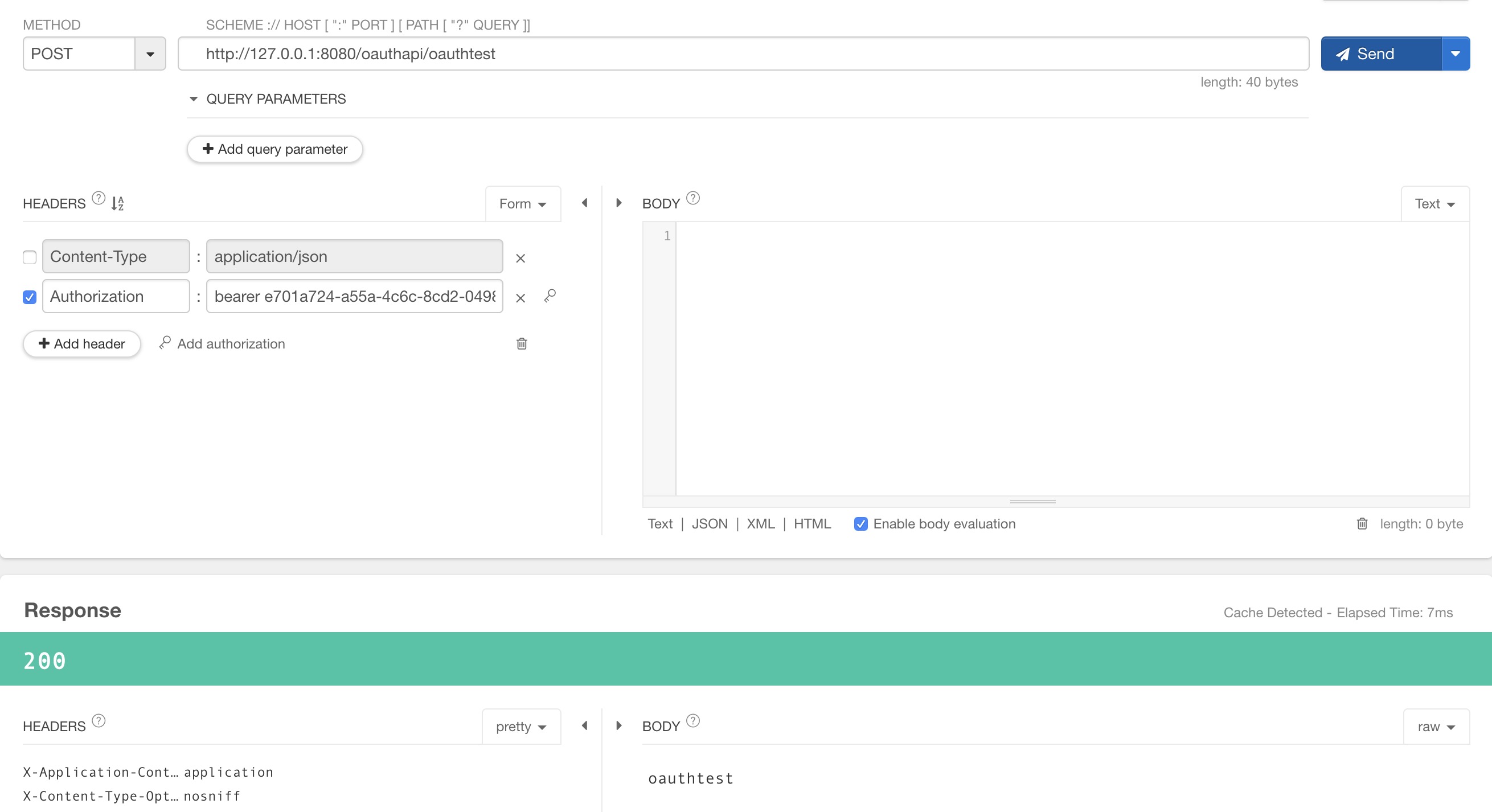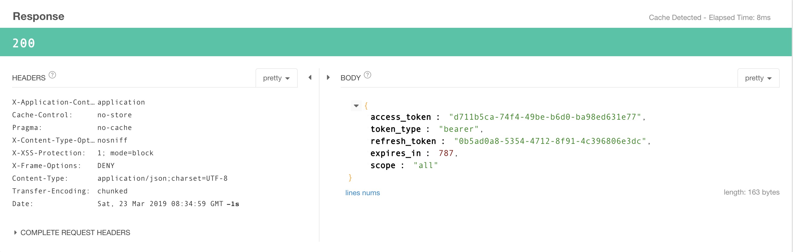 无论是授权码模式还是密码模式,当他们访问端口生成token,使用返回的token:e701a724-a55a-4c6c-8cd2-0498c98d409e 成功调用的接口