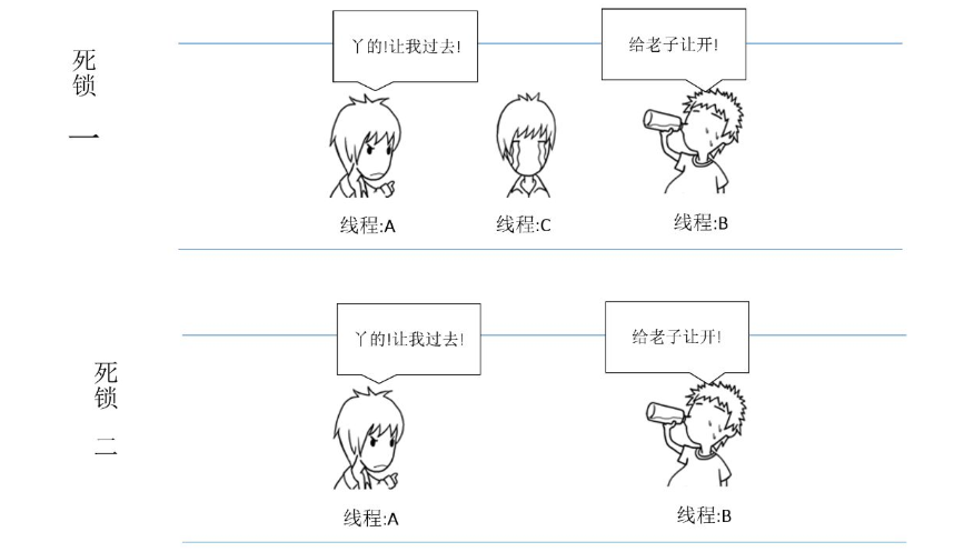 死锁是指两个或两个以上的进程在执行过程中,由于竞争资源或者由于彼此通信而造成的一种阻塞的现象,若无外力作用,它们都将无法推进下去。此时称系统处于死锁状态或系统产生了死锁,这些永远在互相等待的进程称为死锁进程。