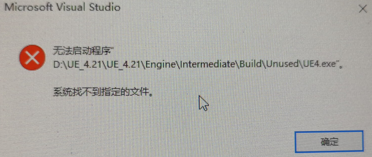 问题4:使用Visual Studio调试UE4项目时无法启动UE4,且报错(无法启动程序"……\UE4.exe" 系统找不到指定的文件)如下图: