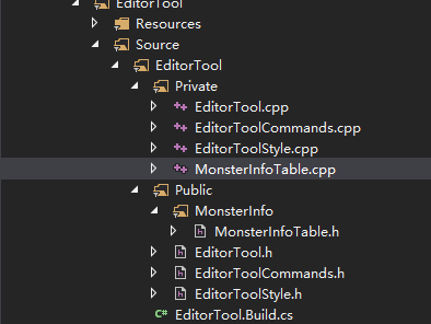 解决方案:先关闭vs,手动调整磁盘中文件夹的结构为如下图(把.cpp文件放到Private文件夹下),然后右键UE4的.uproject文件,Generate一下vs项目,最后打开vs,进行编译就好了。