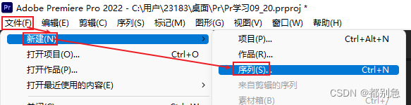 4.点击左上角【文件】-【新建】-【序列】或者