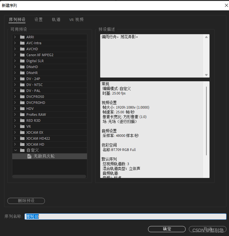 7.在左一【序列预设】就可以看到自定义序列了