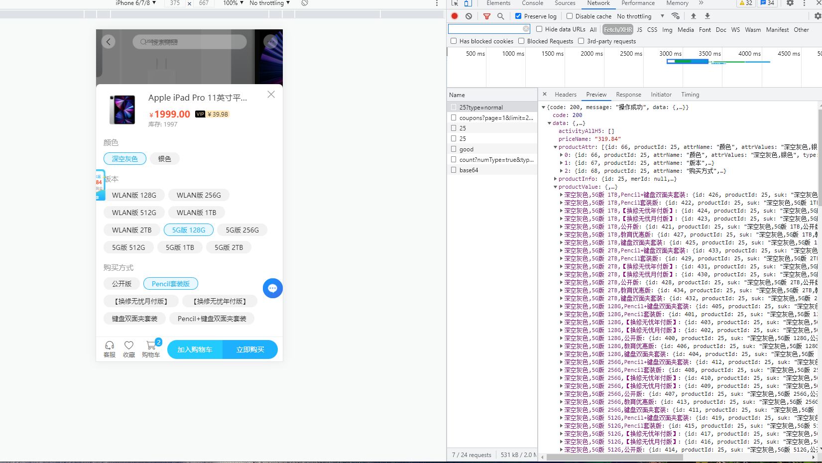 提示:在上个版本的移动端商城中,要做一个类似拼多多的sku轮播图选择器的功能,这个功能其实还挺好玩的,难点最主要是轮播图跟sku属性关联起来,看一下拼多多的示例。