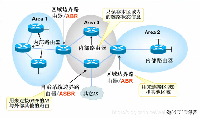 1.区域边界路由器(ABR):用来连接Area0和其他区域的路由器