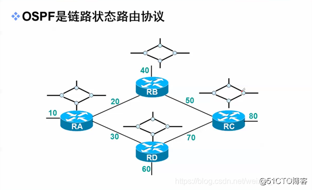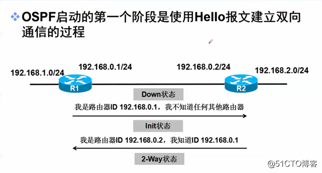 OSPF路由表的形成:路由器会给直连的网段发送信息,从而形成邻居关系,对方收到了链路状态信息之后就会形成完整的网络拓扑结构