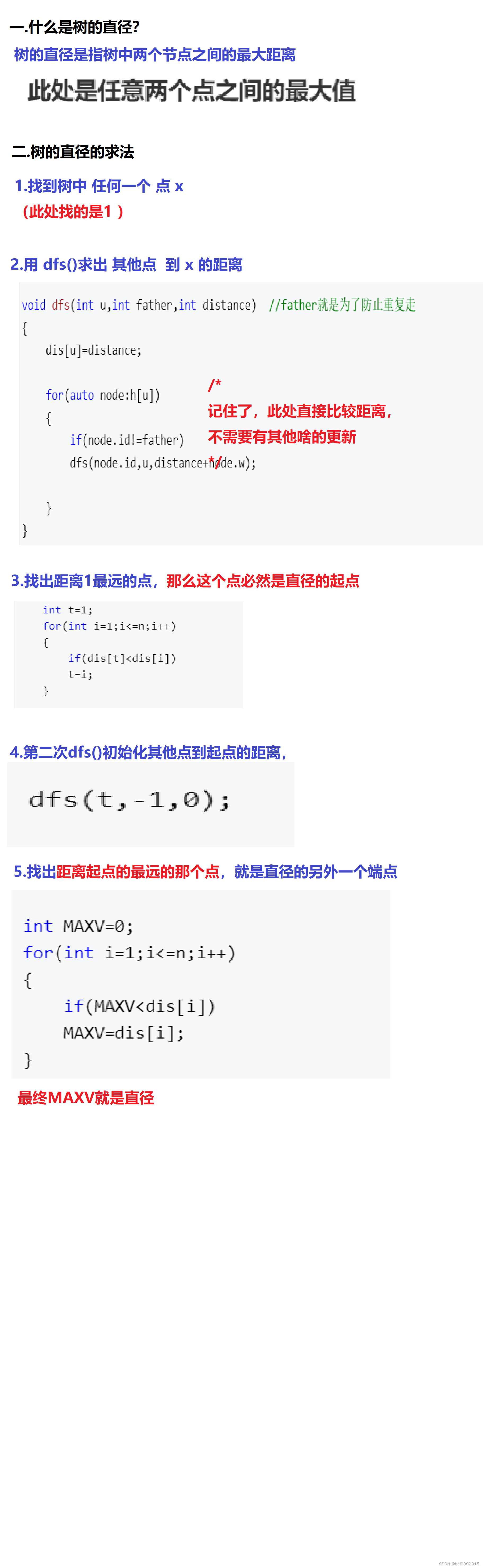 void dfs(int u,int father,int distance) //father就是为了防止重复走