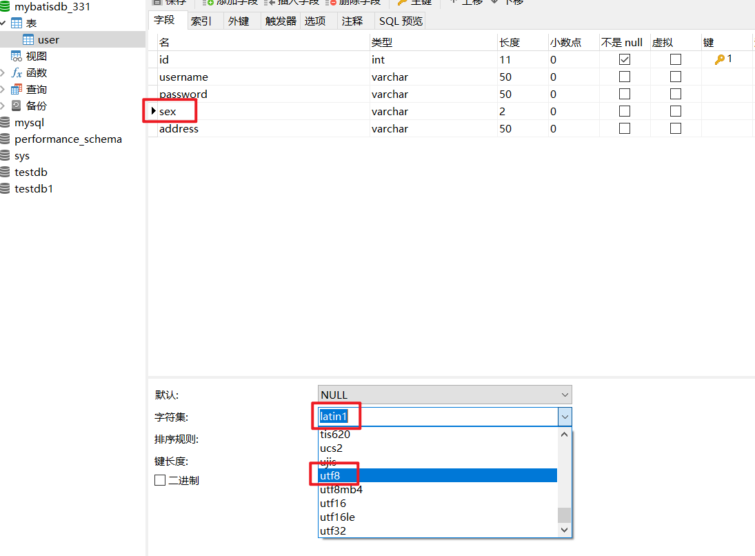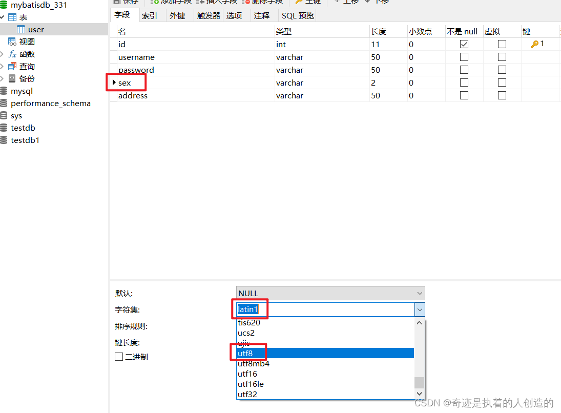这是考虑之前建表时字段本身编码就是错的,一查果然是,varchar类型全改为utf8