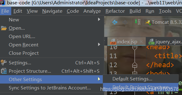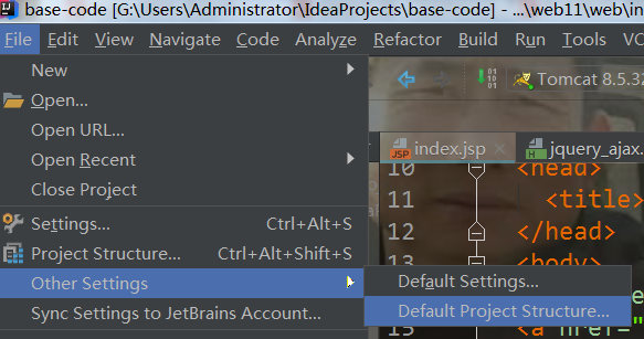 file->other settings->Default Project structure