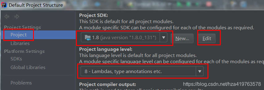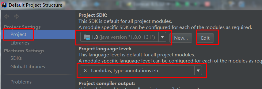 project栏设置:点edit可以删除多余的jdk设置。下拉选择默认jdk版本。 是哪个版本下面就选几开头,否则简单java程序都会报错