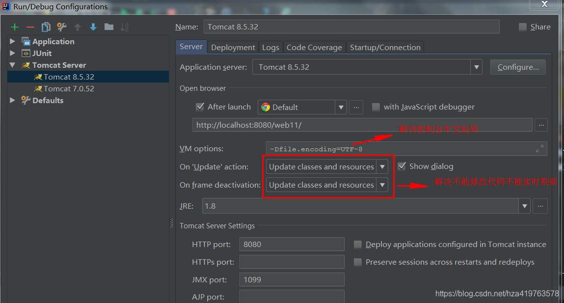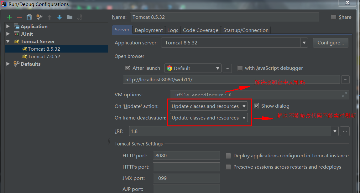 -Dfile.encoding=UTF-8如上图所示:VM options: 后面填