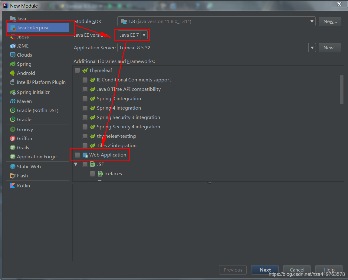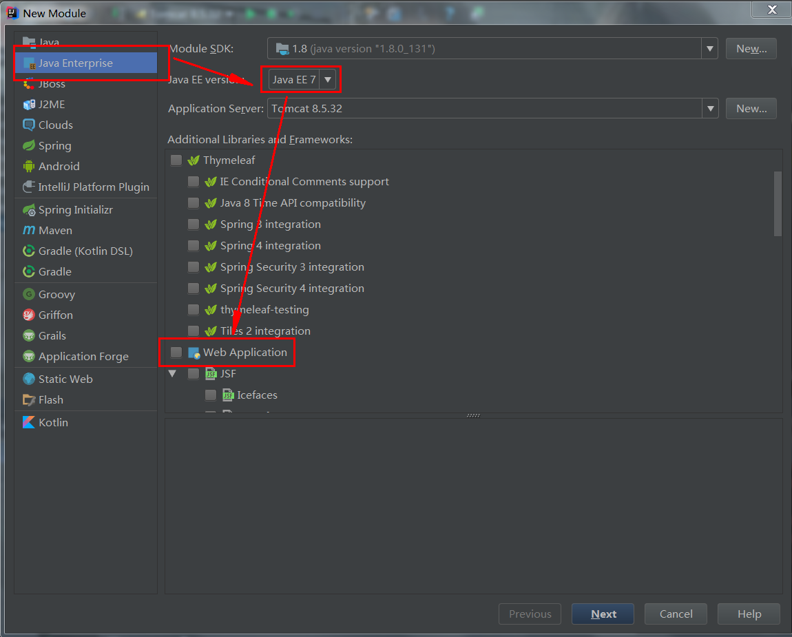 2.先将javaEE版本改为javaEE7.然后再向下滑动勾选web application