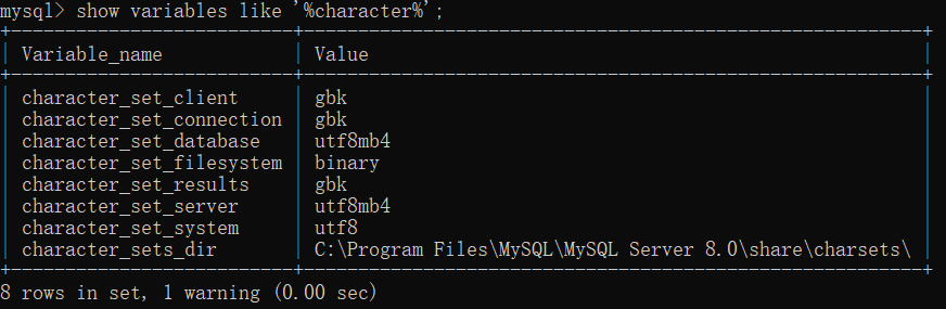 show variables like '%character%';