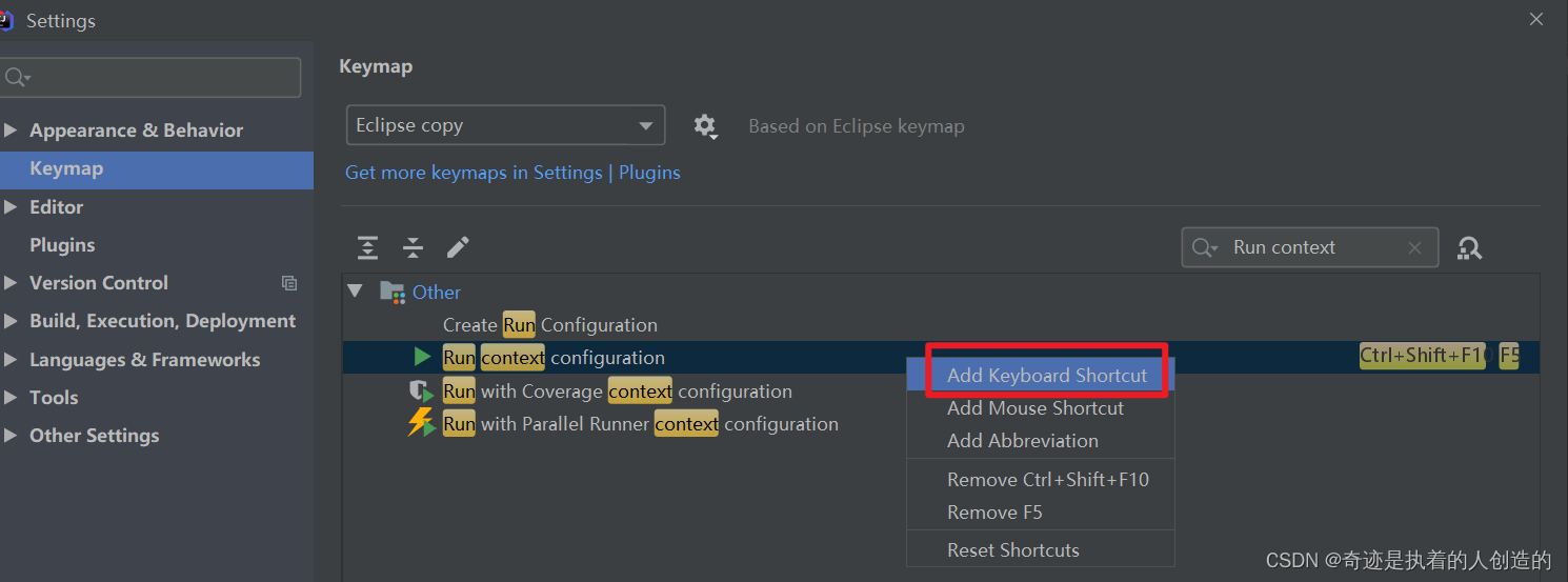 设置-》Keymap->右边搜索 Run context -》右键Add Keyboard ....->输入F5