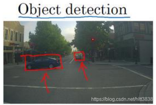 还有一个例子,在计算机视觉中有个问题叫做目标检测,比如在一个无人驾驶项目中, 你不一定非得识别出图片中的物体是车辆,但你需要计算出其他车辆的位置,以确保自己能 够避开它们。