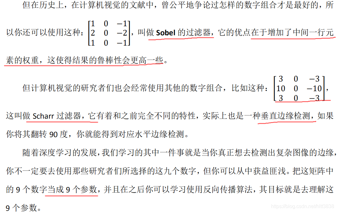 所以这种将这9 个数字当成参数的思想,已经成为计算机视觉中最为有效的思想之一。在接下来的课程中,也就是下个星期,我们将详细去探讨如何使用反向传播去让神经网络学习这 9 个数字。但在此之前,我们需要先讨论一些其它细节,比如一些基础的卷积运算的变量。在下面两节视频中,我将与你们讨论如何去使用 padding ,以及卷积各种不同的发展, 这两节内容将会是卷积神经网络中卷积模块的重要组成部分,所以我们下节视频再见。