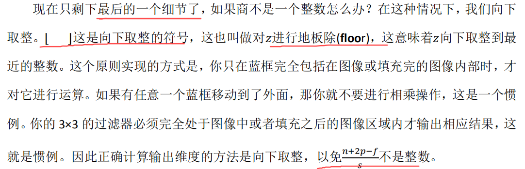 计算机视觉中,?通常是奇数,甚至可能都是这样。 你很少看到一个偶数的过滤器在计算机视觉里使用,我认为有两个原因。 其中一个可能是 ,如果? 是一个偶数,那么你只能使用一些不对称填充。只有 ? 是奇数的情况下,Same 卷积才会有自然的填充,我们可以以同样的数量填充四周,而不是左边填充多一点,右边填充少一点,这样不对称的填充。