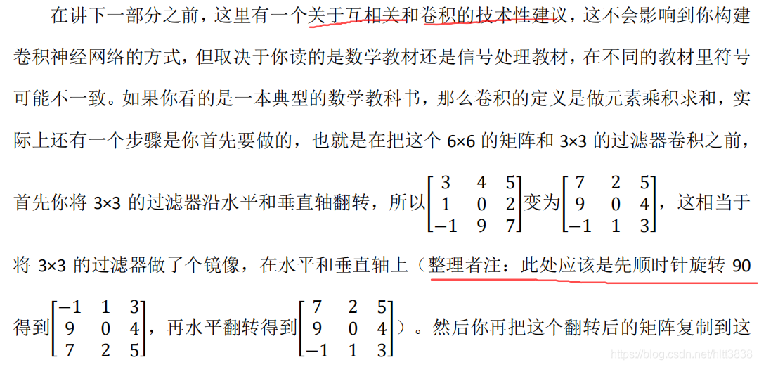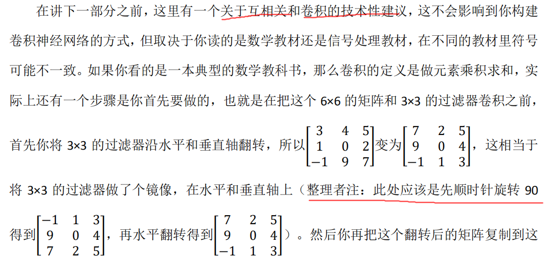 从技术上讲,我们实际上做的,我们在前面视频中使用的操作,有时被称为互相关(cross-correlation )而不是卷积(convolution )。但在深度学习文献中,按照惯例,我们将这(不进行翻转操作)叫做 卷积操作。 总结来说,按照机器学习的惯例,我们通常不进行翻转操作。从技术上说,这个操作可能叫做互相关更好。但在大部分的深度学习文献中都把它叫做卷积运算,因此我们将在这些视频中使用这个约定。如果你读了很多机器学习文献的话,你会发现许多人都把它叫做卷积 运算,不需要用到这些翻转。 事实证明在信号处理中或某些数学分支中,在卷积的定义包含翻转,使得卷积运算符拥 有这个性质,即(? ∗ ?) ∗ ? = ? ∗ (? ∗ ?) ,这在数学中被称为结合律。这对于一些信号处理应用来说很好,但对于深度神经网络来说它真的不重要,因此省略了这个双重镜像操作,就简化了代码,并使神经网络也能正常工作。 根据惯例,我们大多数人都叫它卷积,尽管数学家们更喜欢称之为互相关,但这不会影响到你在编程练习中要实现的任何东西,也不会影响你阅读和理解深度学习文献。