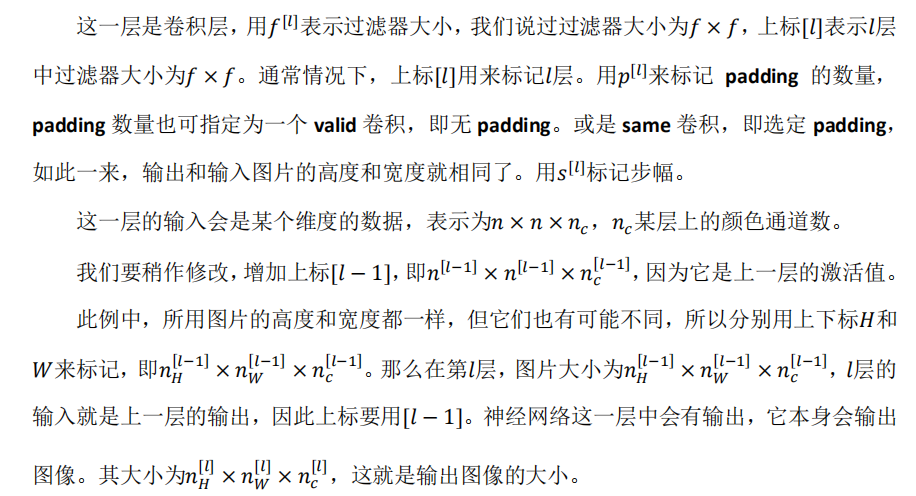 少。 最后我们总结一下用于描述卷积神经网络中的一层(以? 层为例),也就是卷积层的各 种标记。