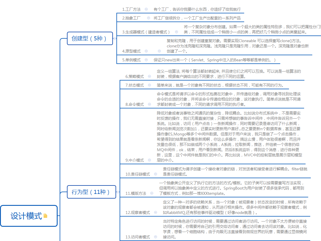 (1)行为型: 该模式是为了怎么样合理地设计对象之间的交互通信,以及怎样合理的为对象分配职责,让设计富有弹性,易维护,易复用。