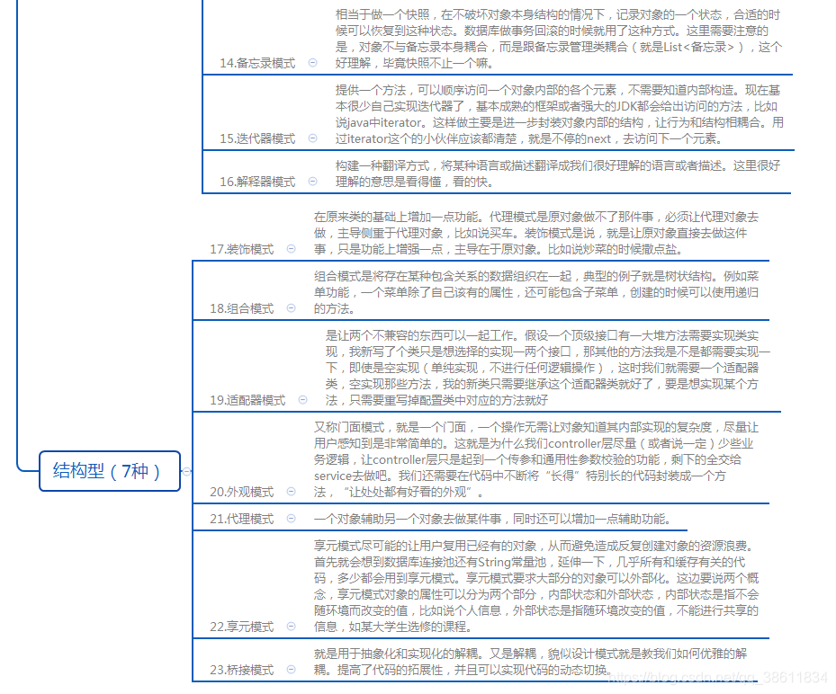 (2)结构型:涉及如何组合类和对象,以形成更大的结构,和类有关的结构型模式涉及如何合理的使用继承机制。和对象有关的结构型模式涉及如何合理地使用对象组合机制。