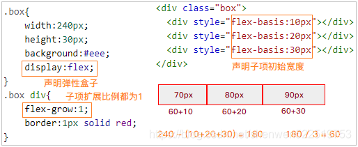| flex-basis | 项目的长度。合法值:“auto”/数值单位/百分比。 |