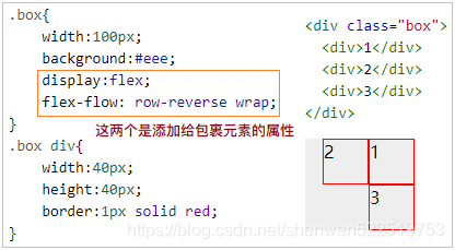 | flex-flow | 复合属性。设置弹性盒子项排列方式。 | CSS3 |