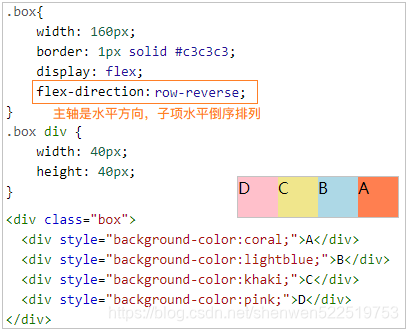 上例中若主轴是水平方向:flex-direction:row|row-reverse 时: