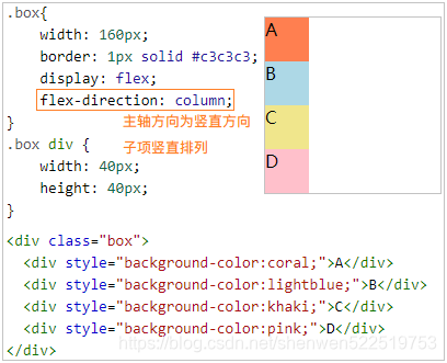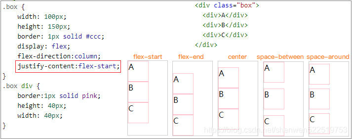 上例中若主轴是竖直方向:flex-direction:column|column-reverse 时: