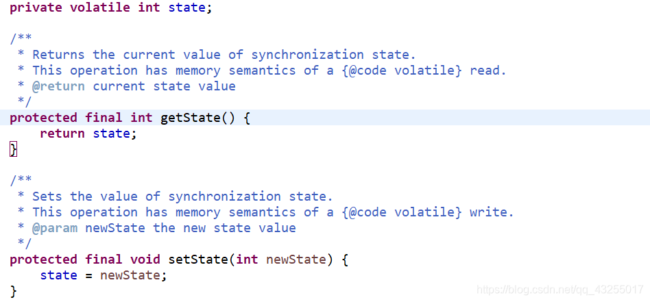 在AQS的源码可以看到对于state共享变量,使用volatile关键字进行修饰,从而保证了可见性,若是对于volatile关键字不熟悉的可以参考这一篇[]。