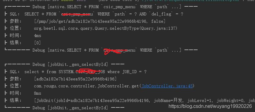 我们再来看看使用了beetlsql后的后台日志是如何打印的: