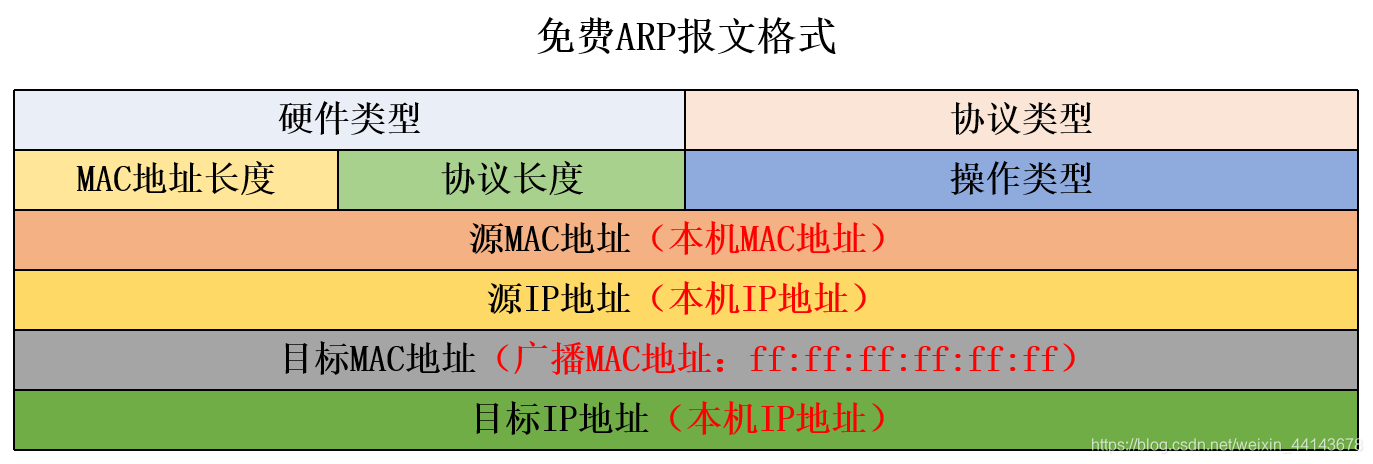 免费ARP报文是一种很特殊的ARP报文,如下图所示为免费ARP报文格式。