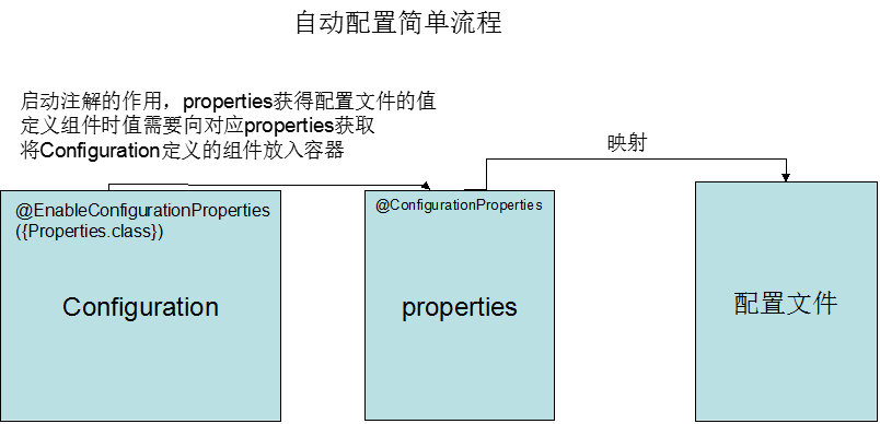- 给容器中自动配置类添加组件的时候,会从properties类中获取某些属性。我们就可以在配置文件中指定这些属性的值